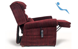 Golden Technologies has perfected comfort. With the development of our exclusive, patented MaxiComfort® positioning technology, Golden delivers the most advanced lift and recline chair available anywhere in the world! When you slip into a MaxiComfort electric recliner chair, your body is transported into a blissful, relaxed state. These chairs offer optimal comfort positions that promote health, wellness and relaxation for both your body and your mind. Have a seat and discover for yourself why MaxiComfort lift and recline chairs are the world’s most comfortable. The MaxiComfort system transfers you effortlessly and smoothly through multiple lift and recline positions. The most common are the TV Watching, Sleep, Zero-Gravity and Trendelenburg positions. MaxiComfort is the only seating system that gives you this many recline features and lifts you to the standing position, all at the touch of a button.